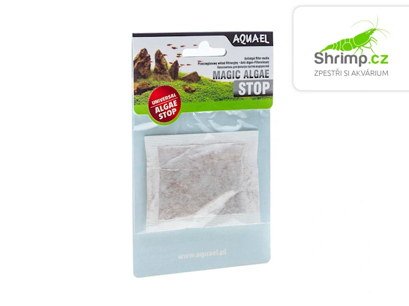 Aquael MAGIC ALGAE STOP je speciální filtrační vložka ve formě malého sáčku, který se vejde do jakéhokoli typu filtru – vnitřního, závěsného i externího. Díky svým jedinečným vlastnostem účinně potlačuje růst zelených plovoucích řas a rychle obnovuje čistotu a čirost vody.
