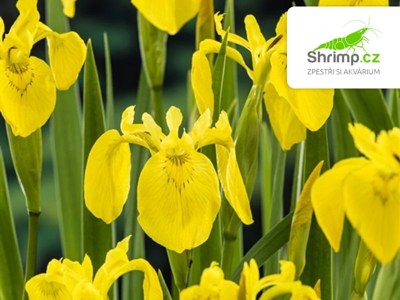 Iris pseudacorus, známý jako žlutý kosatec, je působivá a nenáročná vodní rostlina s typickými, zářivě žlutými květy, které kvetou v období květen - červen. V přírodě roste na březích rybníků, jezírek a v mokřadech, kde svým vysokým a pevným vzrůstem vytváří nápadné trsy.
