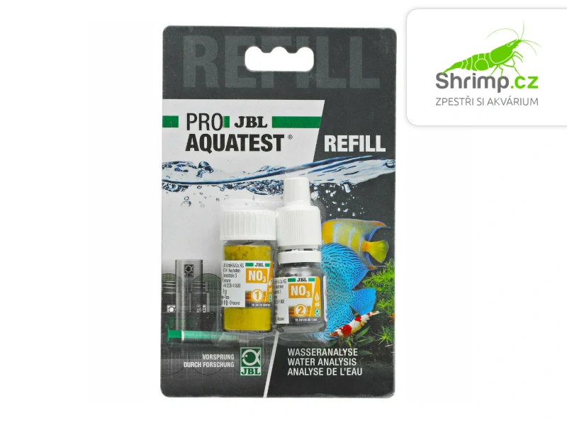 Náhradní náplň pro kapkový test JBL NO3 test, určená k přesnému měření koncentrace dusičnanů (NO3) ve vodě. Pomáhá udržovat rovnováhu živin a předchází přemnožení řas. Ideální pro sladkovodní i mořská akvária a jezírka.