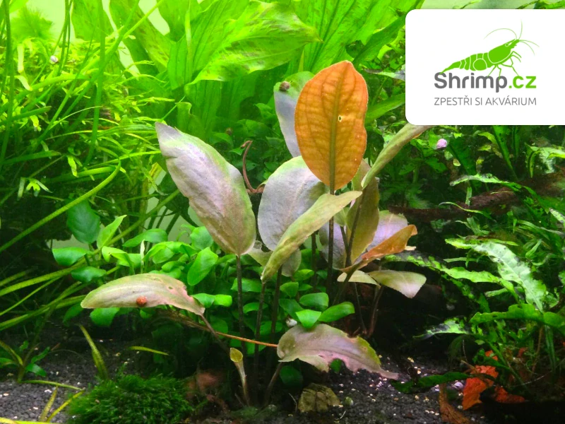 Hodí se do střední části akvária, kde krásně vynikne i v menších skupinách. Její listy jsou nádherně zbarvené – spodní strana má načervenalý nádech, zatímco horní strana je tmavě růžová se zeleným žilkováním. Barva se může měnit v závislosti na intenzitě světla a množství živin.