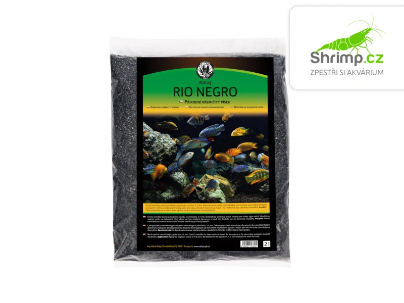 Rio Negro je černý křemičitý písek přírodního původu o zrnitosti 2–3 mm, který je vhodný pro všechny typy nádrží.