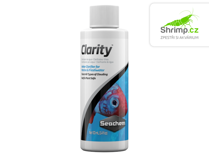 Seachem Clarity™ je komplexní čistič vody, který je bezpečný pro sladkovodní i mořská akvária. Obsahuje srážecí a flokulační činidla v jedné lahvičce pro maximální účinnost. Odstraňuje bakteriální zákal, zelený zákal a mikroskopické částice. Seachem Clarity™ funguje tak, že shlukuje mikroskopické částice do větších kusy, které dokáže filtr zachytit. Následně bude voda ve tvém akváriu čistá a jasná .