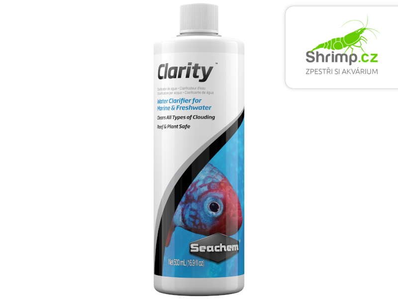 Seachem Clarity™ je komplexní čistič vody, který je bezpečný pro sladkovodní i mořská akvária. Obsahuje srážecí a flokulační činidla v jedné lahvičce pro maximální účinnost. Odstraňuje bakteriální zákal, zelený zákal a mikroskopické částice. Seachem Clarity™ funguje tak, že shlukuje mikroskopické částice do větších kusy, které dokáže filtr zachytit. Následně bude voda ve tvém akváriu čistá a jasná .