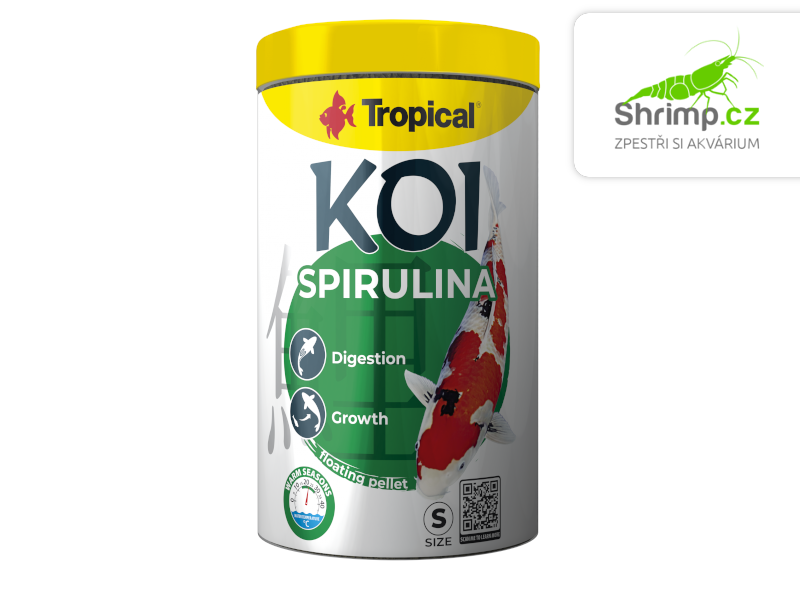Tropical Koi Spirulina Pellet S je plnohodnotné krmivo pro denní krmení mladých kaprů KOI a velké Závojnatky, obsahující všechny nepostradatelné výživové složky. Je obohaceno o Spirulinu i jiné výživné složky, které ovlivňují správný rozvoj svalstva a pěkné vybarvení ryb.